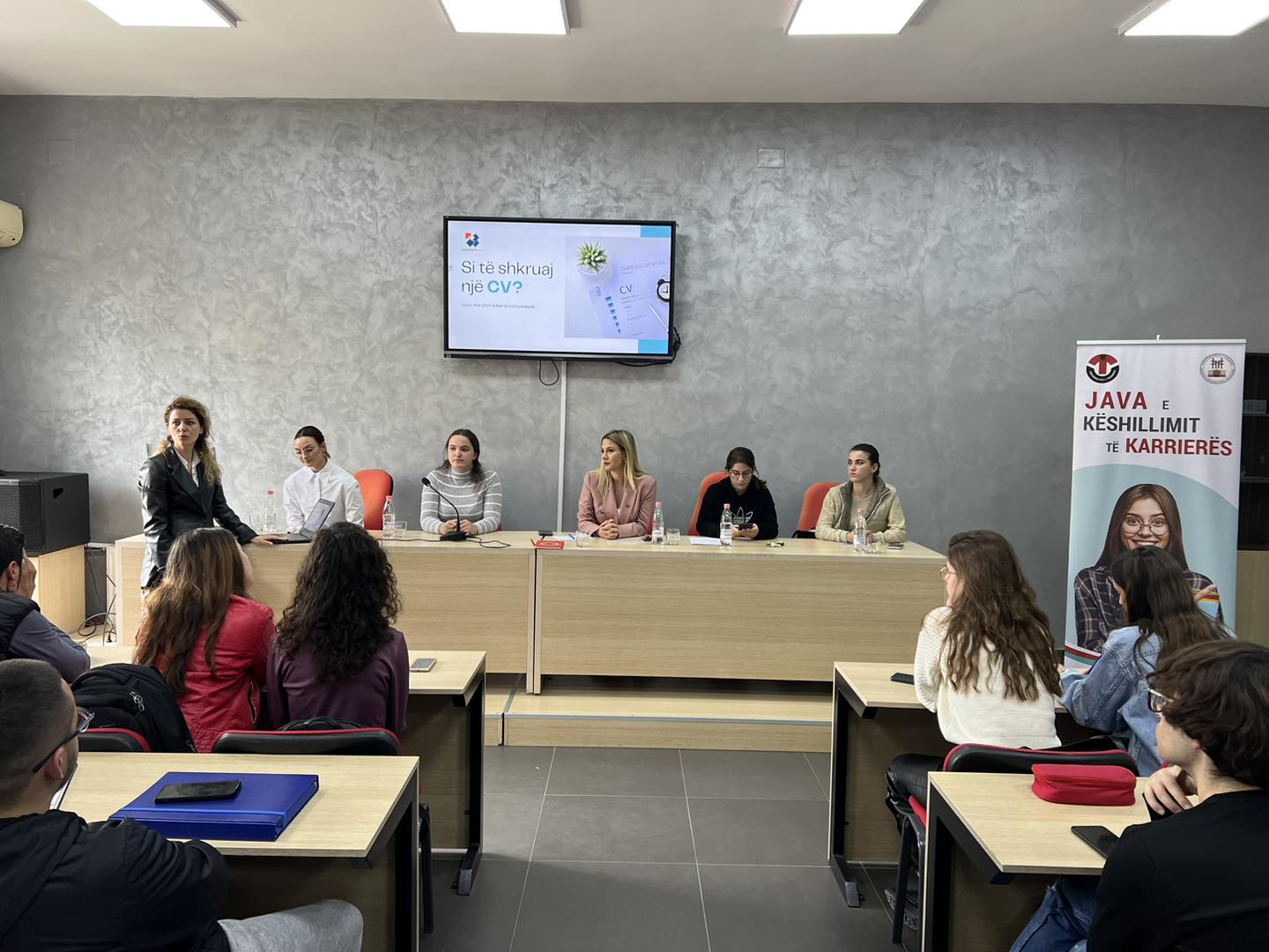 “Java e Këshillimit të Karrierës” u organizua me qëllim t’u vinte në ndihmë studentëve të ciklit Bachelor dhe Master në orientimin e projektit të tyre profesional për të ardhmen. Sipas programit, u trajtuan tema të shumta si: hartimi i CV-së, letra prezantuese/motivuese, intervista e punës, kanalet e rekrutimit për gjetjen e një pune të përshtatshme me profilin e tyre, si edhe rëndësia e rrjeteve sociale dhe reputacioni që gëzon interneti në kohët dixhitale.