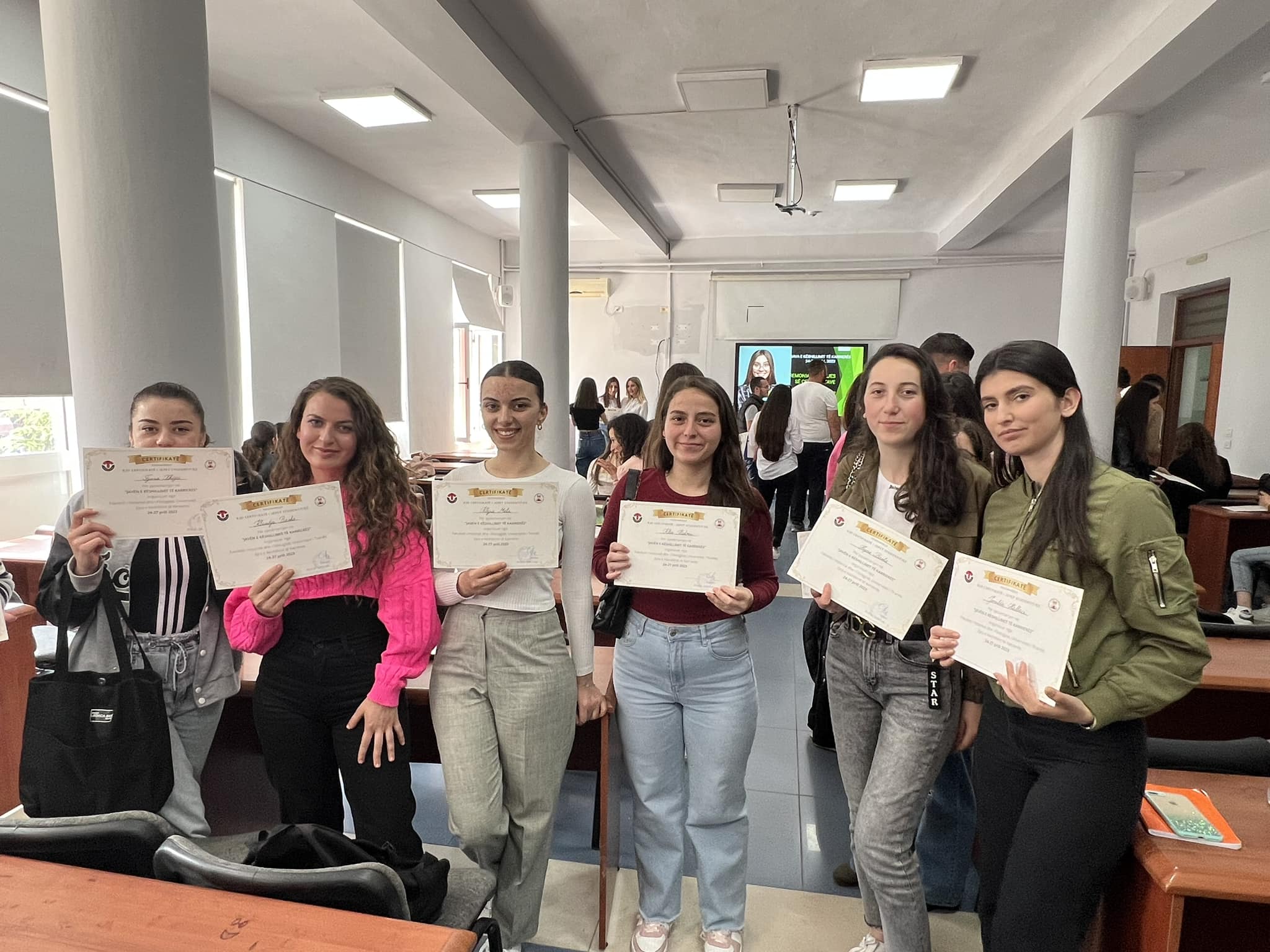Në fund të këtij aktiviteti studentët e trajnuar u pajisën me certifikata pjesëmarrjeje, që u shpërndanë nga dekani i Fakultetit, prof.dr. Sabri Laçi, me pjesëmarrjen edhe të dy zv.dekanëve Elsa Skënderi Rakipllari dhe Andi Pinari.